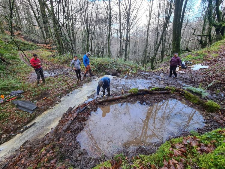 El pasado fin de semana se impermeabilizó el vaso de la charca de Itzuregi. Esta, además de cumplir los objetivos mencionados, servirá como espacio de divulgación y sensibilización, ya que se encuentra en una zona muy frecuentada de fácil acceso.