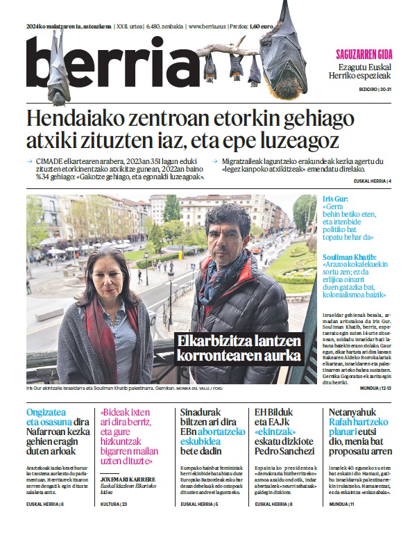 Gaur, maiatzak 1, Berria egunkariak erreportajea eskaini die gure bizilagun onenei: «Saguzarrak: buruz behera, eta hankaz gora». Enekoitz Telleria Sarriegi da artikulu honen idazlea eta bertan EHUko ikerlarien hitzak eta Naturtzaindiako lagunenak jasotzen ditu, egunkariko portadan, «Euskal Herriko Saguzarren Gida» ageri da.